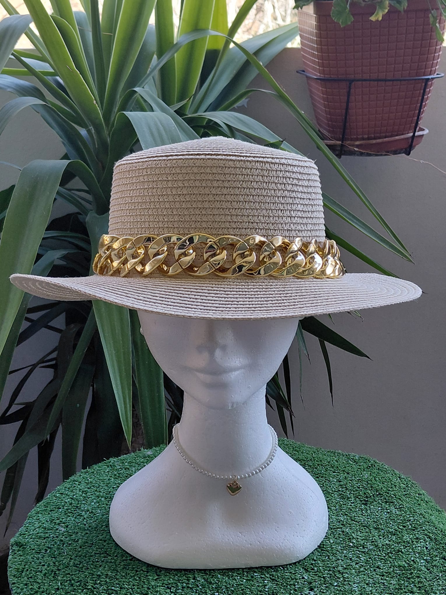 Sombrero canutier con materiales: cadena dorada ligera plástico